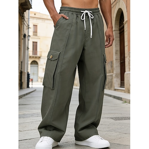 Per uomo Pantaloni Cargo Pantaloni Tasca Gamba Dritta Tinta unica Comodità All'aperto Lunghezza intera Casuale Quotidiano Streetwear Elegante Nero Verde militare Micro-elastico