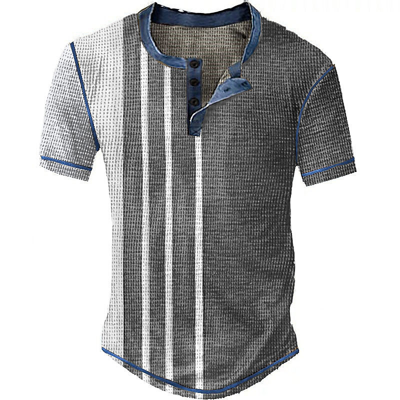 Men's Graphic Color Block Stripe Vintage Shirt Waffle Henley Shirt Short Sleeve 3D Print Fashion Designer Basic Outdoor Daily Summer Blue Brown Green Gray Henley Henley T-Shirt