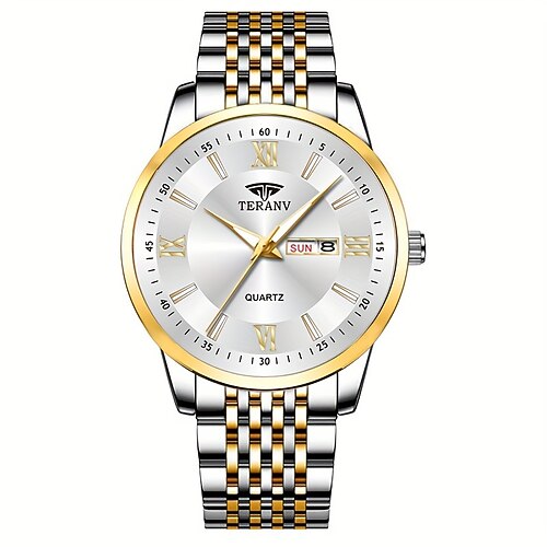 un originale orologio da polso sportivo al quarzo casual da uomo, con cinturino in lega in stile business, con resistenza all'acqua IPX7 e display luminoso per la data e il giorno.