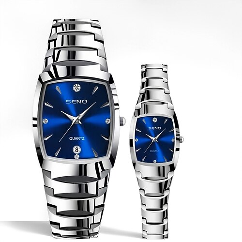 2 orologi da coppia, nuovi, con cinturino in acciaio inossidabile, da uomo e da donna, al quarzo, con strass, quadrante resistente ai graffi e all'usura, preferiti per regali di compleanno e per le