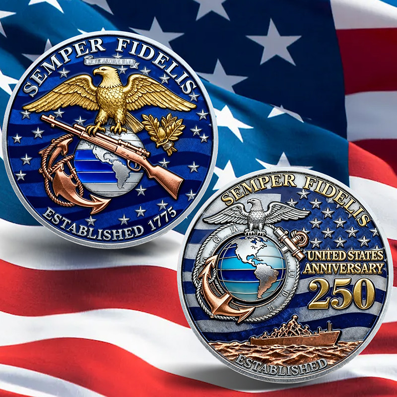 U.S. Marine Corps Commemorative Coin – United States 250th Anniversary Iron Art Military Challenge Coin, Metal Collectible Medal for Marines Patriotic Gifts