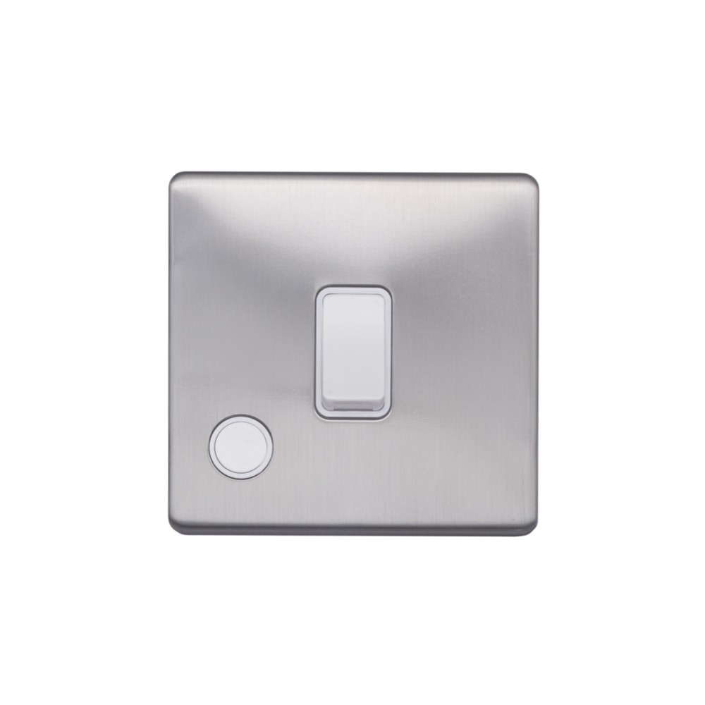 Lieber Brushed Chrome 20A 1 Gang Double Pole Switch Flex Outlet - White Insert Screwless - Size: 86mm x 86mm x 2.1 mm