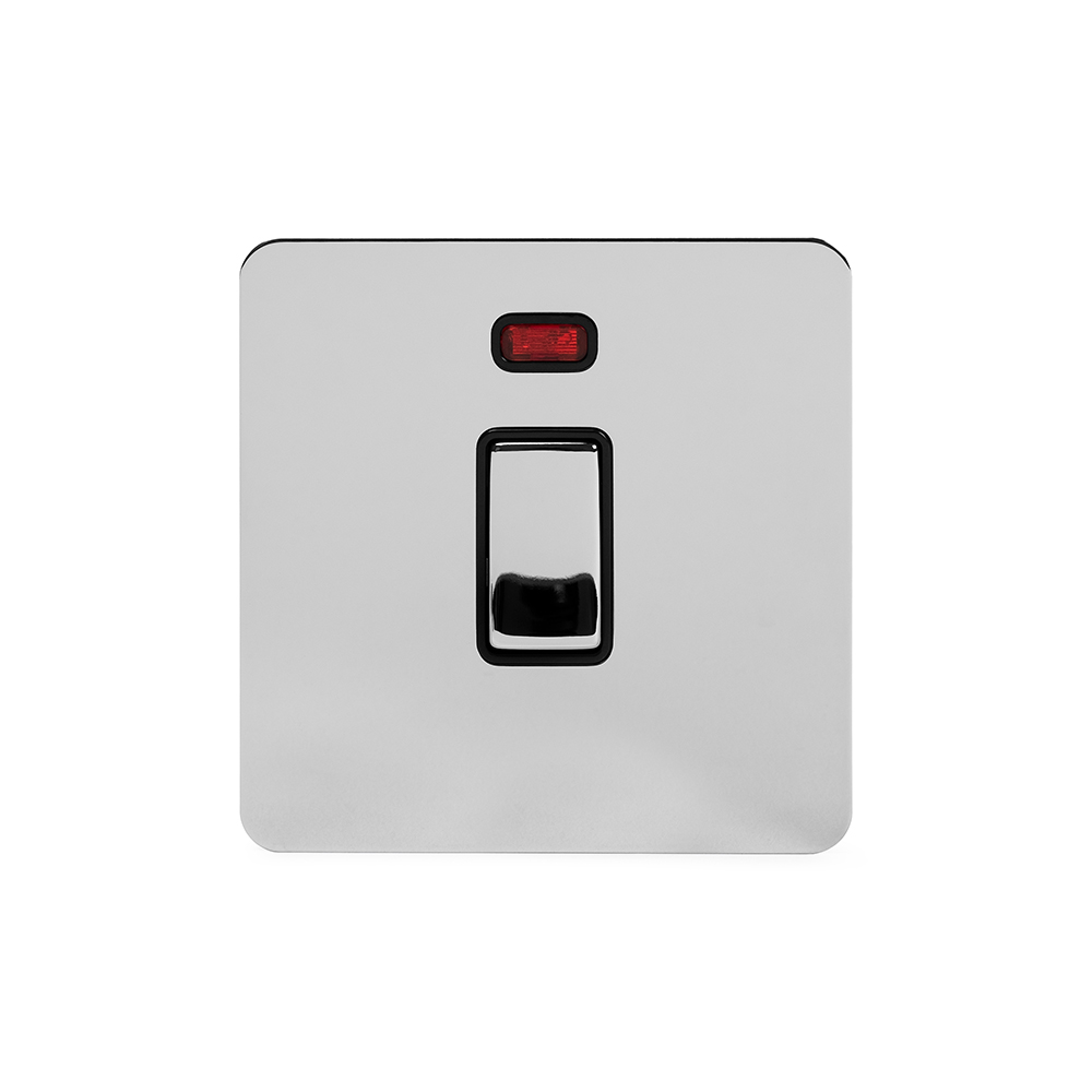 Soho Lighting Polished Chrome Flat Plate 20A 1 Gang Double Pole Switch With Neon Blk Ins Screwless