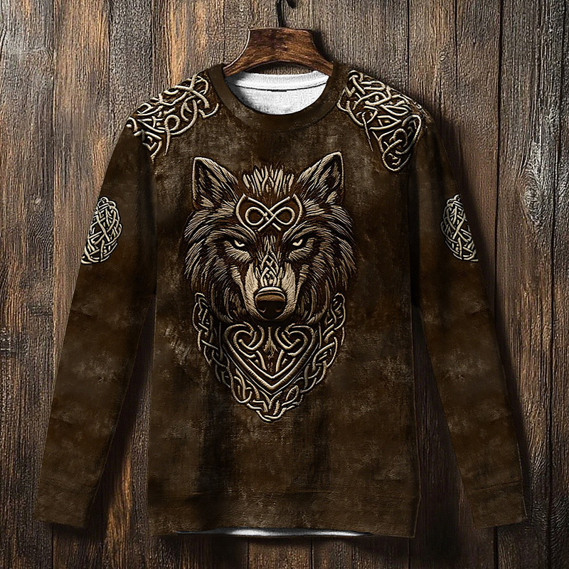 Men's Sweatshirt Blue Black Brown Crew Neck Wolf Celtic Knot Print Casual Daily Holiday Vintage Viking Fall Winter Clothing Apparel Hoodies Sweatshirts Long Sleeve