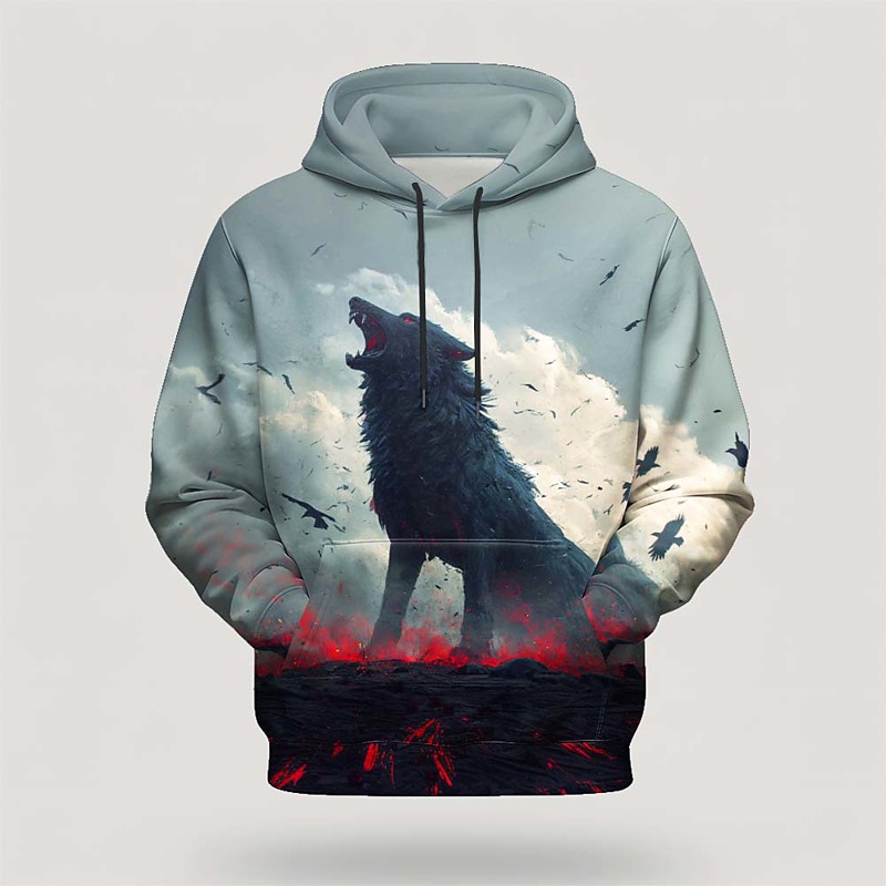 Men's Moon Wolf Hoodie Sweatshirt 3D Fantasy Crew Neck Streetwear Club Gift Light Blue Blue 1 Blue 3# Blue 2# Drawstring Fall Winter Designer S M L XL XXL XXXL