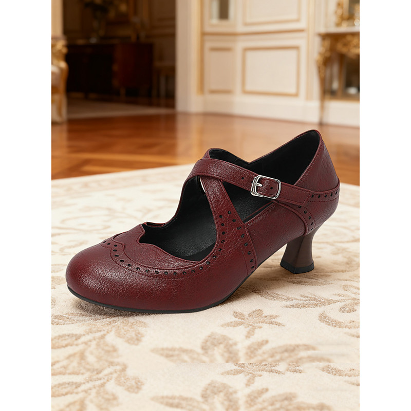 Women's 1930s Vintage Cutout Mid Heel Pumps – Retro Faux Leather Shoes for Swing Dance, Tea Parties Pin-Up Fashion