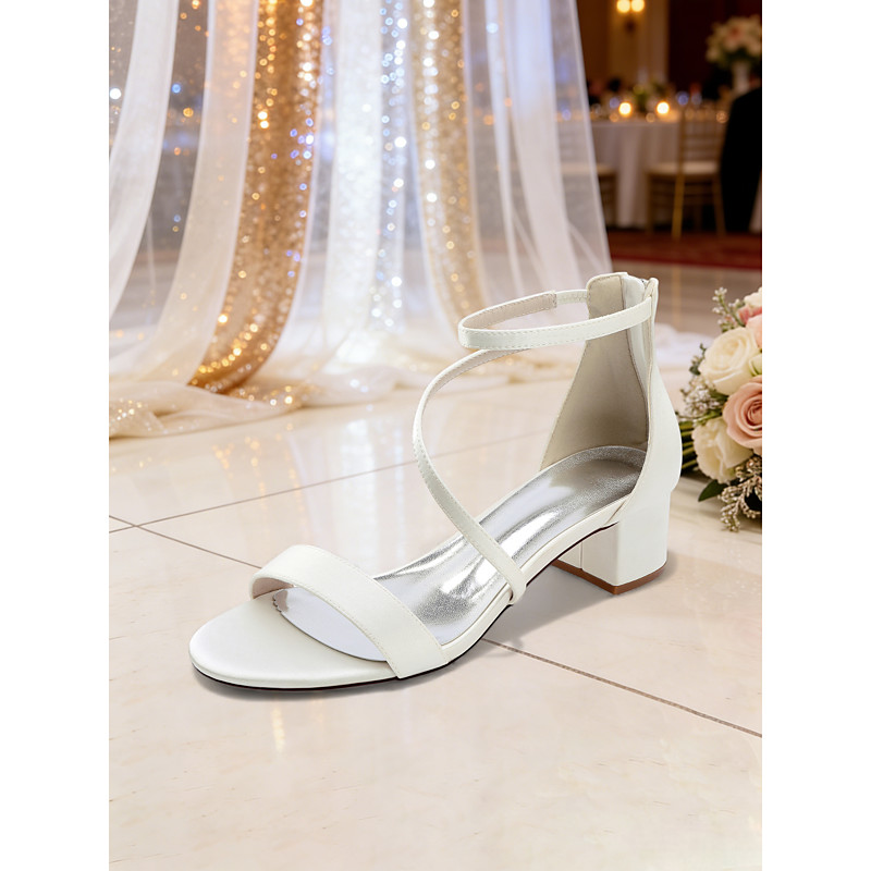 Women's Champagne Low Block Heel Sandals with Ankle Strap - Elegant Bridesmaid Shoes for Modern City Chic Weddings