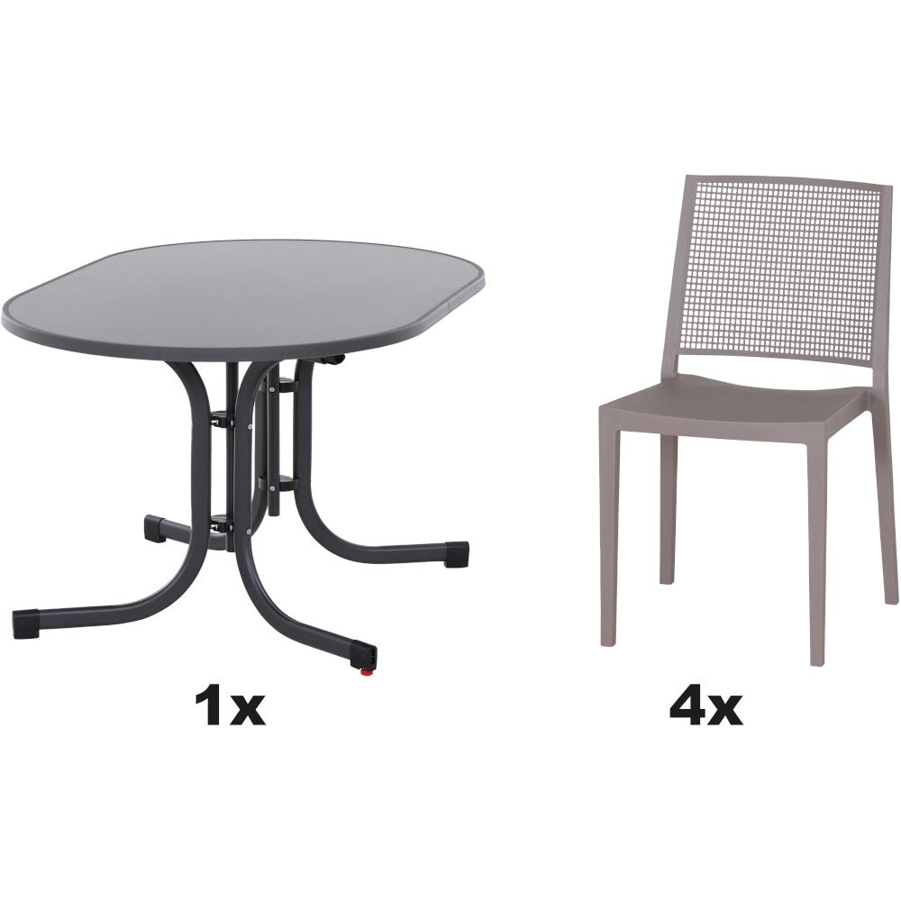 SIENA GARDEN Urban Lights Set 5teilig Square Stuhl gastrotauglich taupe mit Tisch Paco 140x90