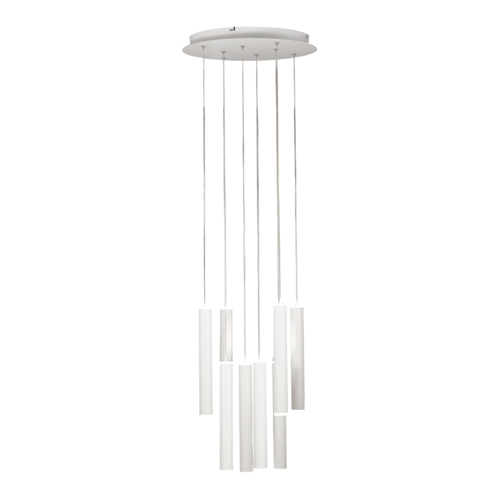 Fabas Luce Prado runde Pendelleuchte mit 8 Lichtern - 52 W dimmbare LED - mattweiße runde Deckenrosette