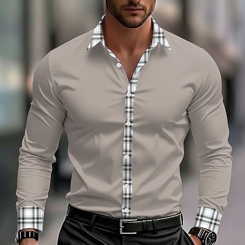Herren Geometrisch Karo / Karomuster Hemd Knopfhemd Lässiges Hemd Langarm Modisch lässig Büro Alltagskleidung Frühling Herbst Umlegekragen 3D-Druck Leinenähnliches Hemd Blau Schwarz Rote Marineblau