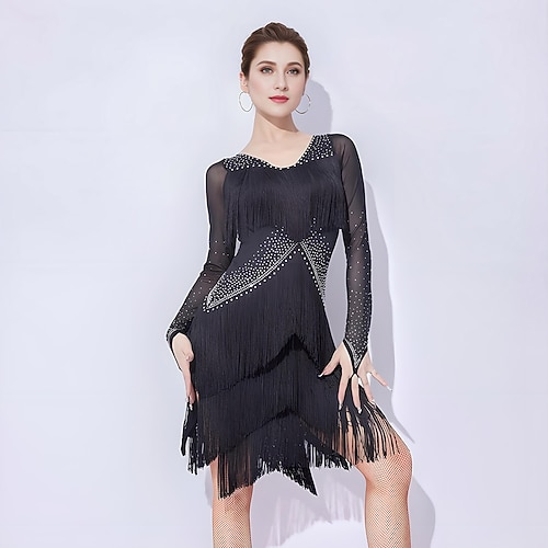 Ballo latino di salsa Abito Con diamantini Nappa A fantasia Per donna Prestazioni Addestramento Manica lunga Retato Fibra di latte