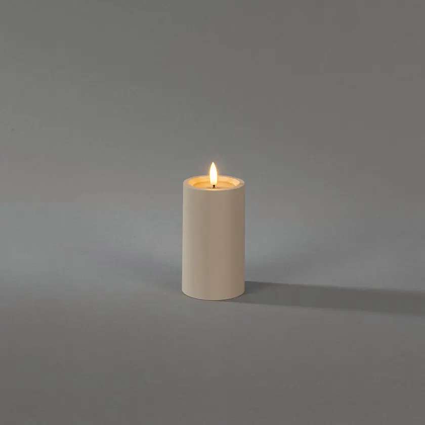 Konstsmide - LED blokkaars op batterijen met flakkervlam - Ø 7 x 12 cm - IP44 - beige