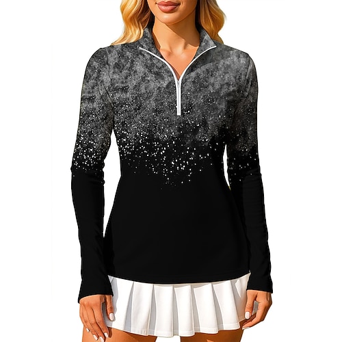 Per donna Sfumatura Marmo Arte astratta Felpa Polo Top Maglietta Maglietta sportiva Manica Lunga Stampato Zip a un quarto Pullover UPF50 Resistente ai Raggi UV Protezione UV Elastico Traspirante