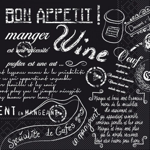 Mank Serviette aus Tissue - Script in Schwarz, 33 x 33 cm, 100 Stück - Schriften Wein