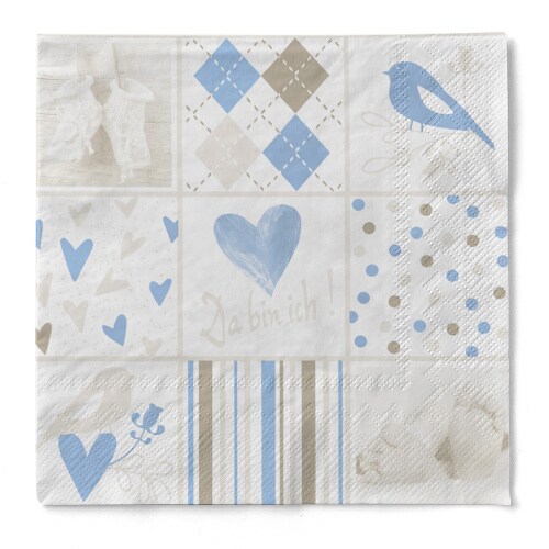 Sovie HORECA Serviette Baby in Blau aus Tissue, 33 x 33 cm, 100 Stück - Geburt Taufe