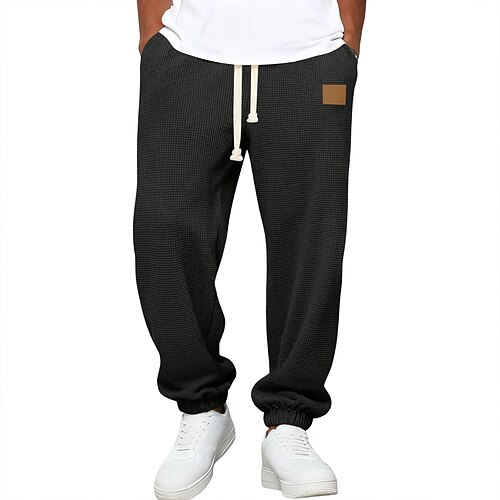Herren Jogginghose Hose Gerade geschnittene Sweatpants Waffelhose Kordelzug Tasche Elastischer Bund Kreuz Komfort Sport im Freien Täglich Mode Lässig Dunkelbraun Schwarz Mikroelastisch