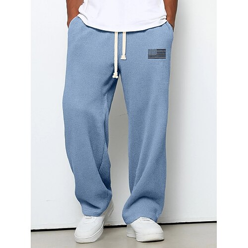 Herren Jogginghose Hose Waffelhose Kordelzug Elastischer Bund Einfach Atmungsaktiv Volle Länge Sport im Freien Lässig Täglich Mode Streetwear Blau Schwarz Mikroelastisch