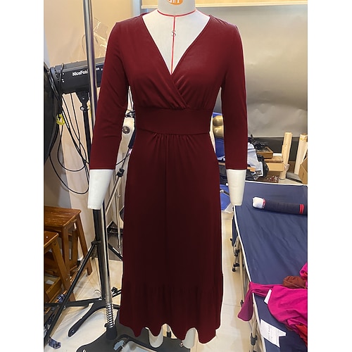 Lässiges Maxikleid mit V-Ausschnitt und 3/4-Ärmeln für Damen