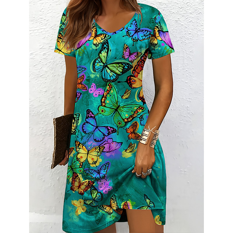 Women's Mini Dress Casual Dress T Shirt Dress Tee Dress Summer Dress Elegant Vacation Vintage Cold Shoulder Regular Fit Ombre Graphic Geometric Short Sleeve V Neck Red Blue Purple Green Summer Spring