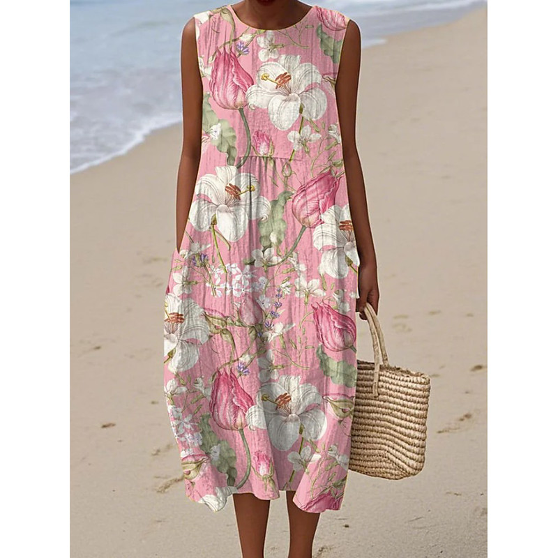 Women's Midi Dress Sundress Shift Dress Vacation Casual Boho Party Beach Floral Graphic Sleeveless Crewneck Black Green Blue White Pink Red Summer Spring