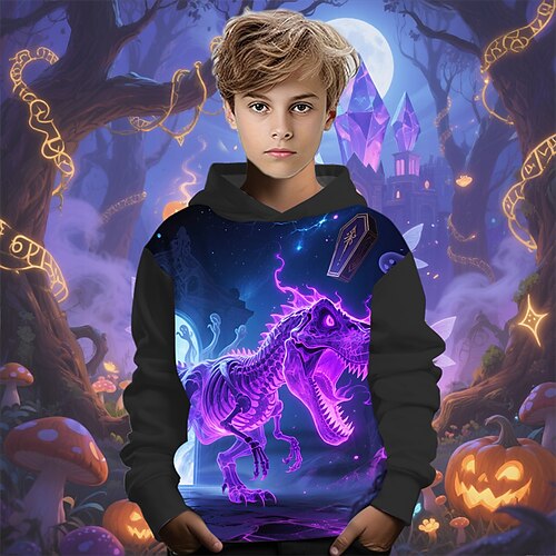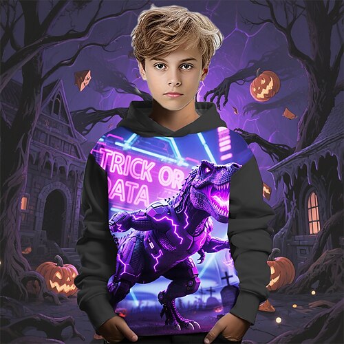Halloween Jungen 3D Cartoon Dinosaurier Kapuzensweatshirt Langarm Frühling Herbst Mode Streetwear Kinder 4-12 Jahre Mit Kapuze Outdoor Lässig Täglich Normale Passform