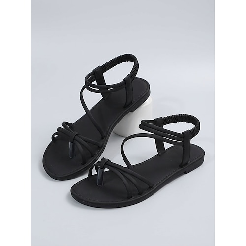 Sandali piatti minimalisti da donna neri con cinturini - comode scarpe estive da passeggio con design a cinturino a T e cinturino sicuro alla caviglia per vacanze al mare e viaggi all'aperto