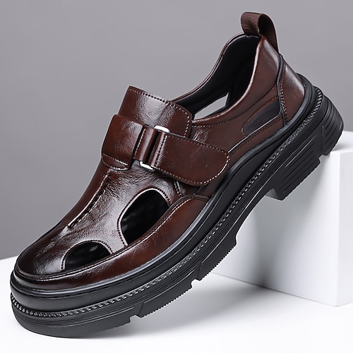 Sandali da uomo marroni da esterno con cinturino regolabile, punta chiusa, comodi da passeggio, traspiranti, sportivi, ideali per viaggi, escursioni, vacanze estive, tempo libero all'aperto e abbigliamento casual di tutti i giorni.