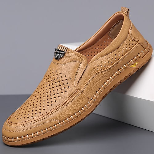 mocassini casual da uomo color kaki traforati, traspiranti e comodi, scarpe da passeggio leggere ed eleganti, ideali per l'uso quotidiano, i viaggi, la guida, l'ufficio e il tempo libero del fine settimana.