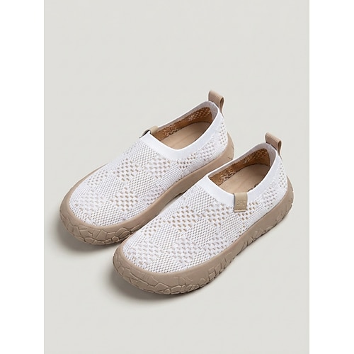 Sneakers slip-on da donna bianche in maglia traspirante: scarpe da passeggio leggere e ammortizzate, comode e flessibili per viaggiare, lavorare e per l'uso quotidiano. attività all'aperto