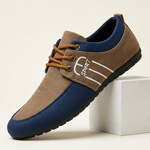 Scarpe casual da uomo blu e marroni con lacci e pannello a contrasto, comode mocassini da passeggio, leggere, ideali per tutti i giorni, viaggi, guida, ufficio, weekend e stile smart casual.