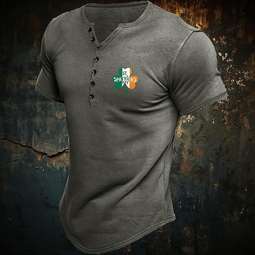 Maglietta Uomo Festa di San Patrizio Maglietta T Shirt Maglietta Henley Maglietta Tee Maniche Corte Henley Primavera e Estate Moda Festa di San Patrizio Vacanza Street Casual Quotidiana Nero Bianco