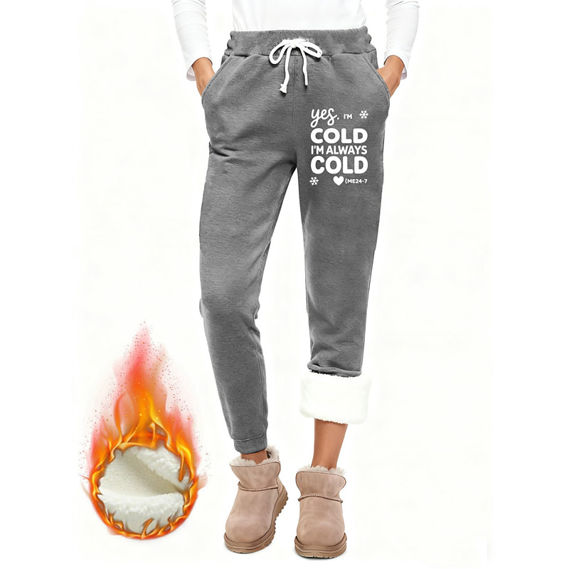 Women's Sweatpants Fleece Pants Slacks Vacation Fashion Basic Full Length High Waist Letter Drawstring Pocket Print Thermal Warm Windproof Comfy High Elasticity Vacation Home Street Black Pink Dark