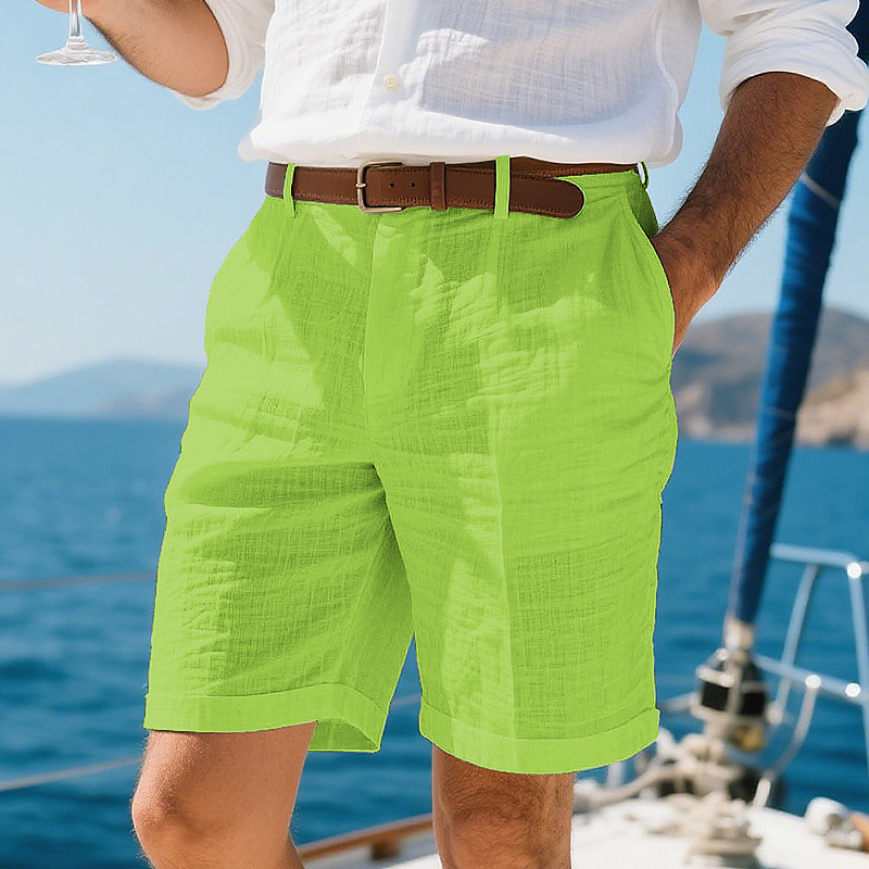 Men's Shorts Linen Shorts Summer Shorts Front Pocket Straight Leg Cargo Pocket Plain Comfort Breathable Knee Length Outdoor Vacation Party Fashion Basic White Navy Blue