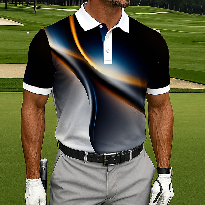 Men's Polo Sports Polo Shirts Casual Sports Turndown Short Sleeve Modern Geometric Buttons Summer Black Blue Green Polo