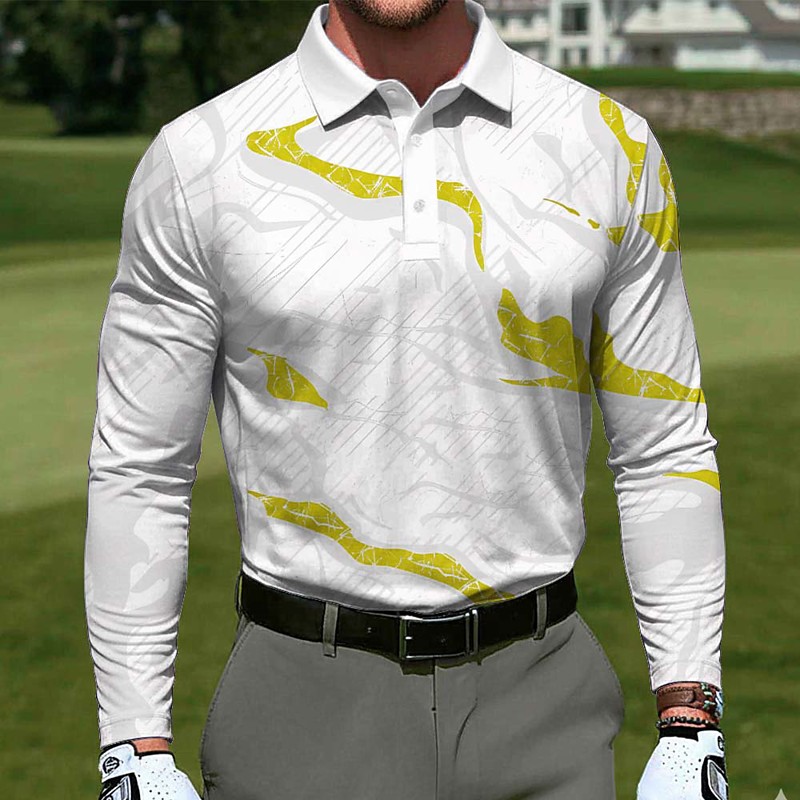 Men's Golf Polo Sports Polo Shirts Long Sleeve Polo Shirts Lapel Casual Outdoor Athleisure Daily Wear 3D Print Buttons Spring Fall Blue Lake blue Red