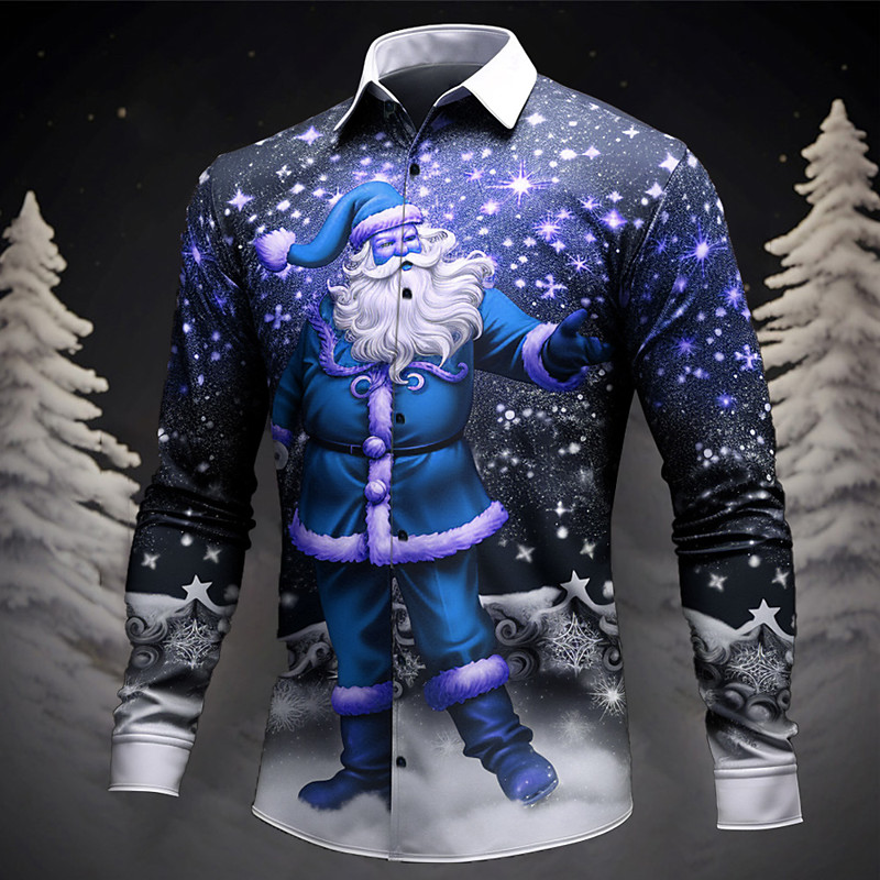 Weihnachten herren santa claus gedruckt hemden santa claus baum casual täglichen kleidung ausgehen herbstamp;Winter Turndown Langarm dunkelrot, rot, burgunderrot S, M, L 4-Wege-Stretch-Stoff Hemd