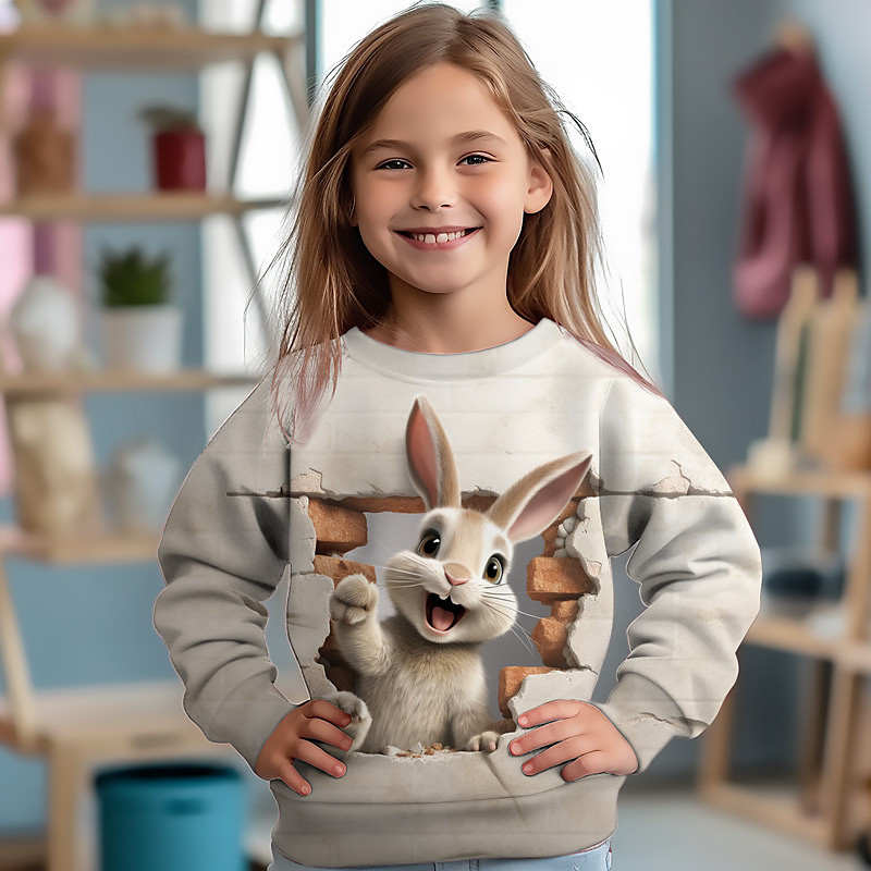 Girls' 3D Cat Rabbit Sweatshirt Pullover Long Sleeve 3D Print Fall Winter Fashion Streetwear Adorable Polyester Kids 3-12 Years Crew Neck Outdoor Casual Daily Regular Fit