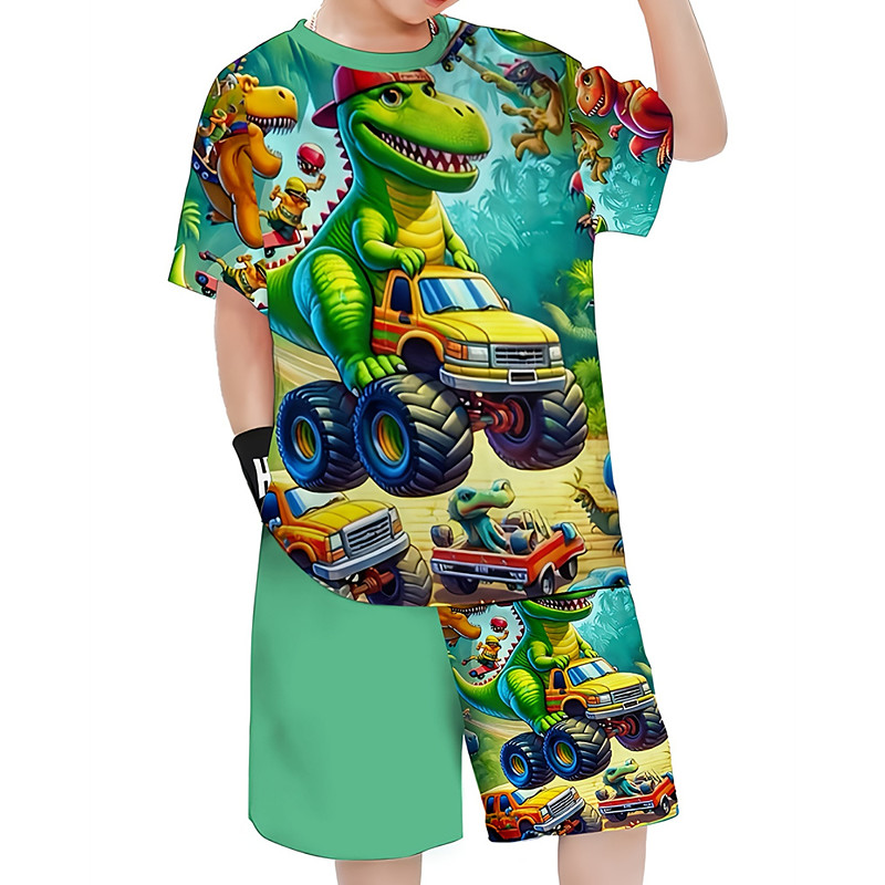 Boys 3D Dinosaur T-shirt Shorts Set Short Sleeve Summer Spring Sports Fashion Daily Kids 4-12 Years Crew Neck Outdoor Vacation Sports Tailored Fit