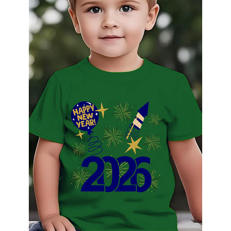 Boys' 3D 2026 New Year'S Party Graphic Letter T shirt Tee Short Sleeve 3D Print Summer Spring Sports Fashion Streetwear Kids 4-12 Years Crew Neck Outdoor Casual Daily Regular Fit