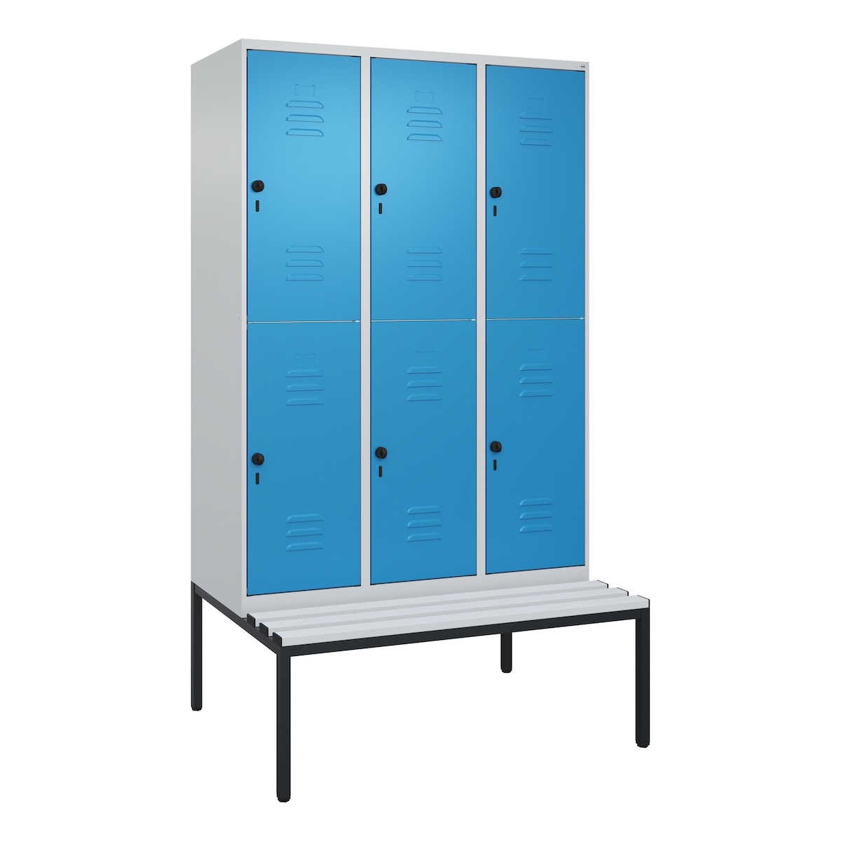 C+P Spind Classic PLUS, Kunststoff untergebaute Sitzbank, 6 Abteile, HxBxT 212x120x82cm, Sicherheitsdrehriegel, Hellgrau/Lichtblau von PROREGAL