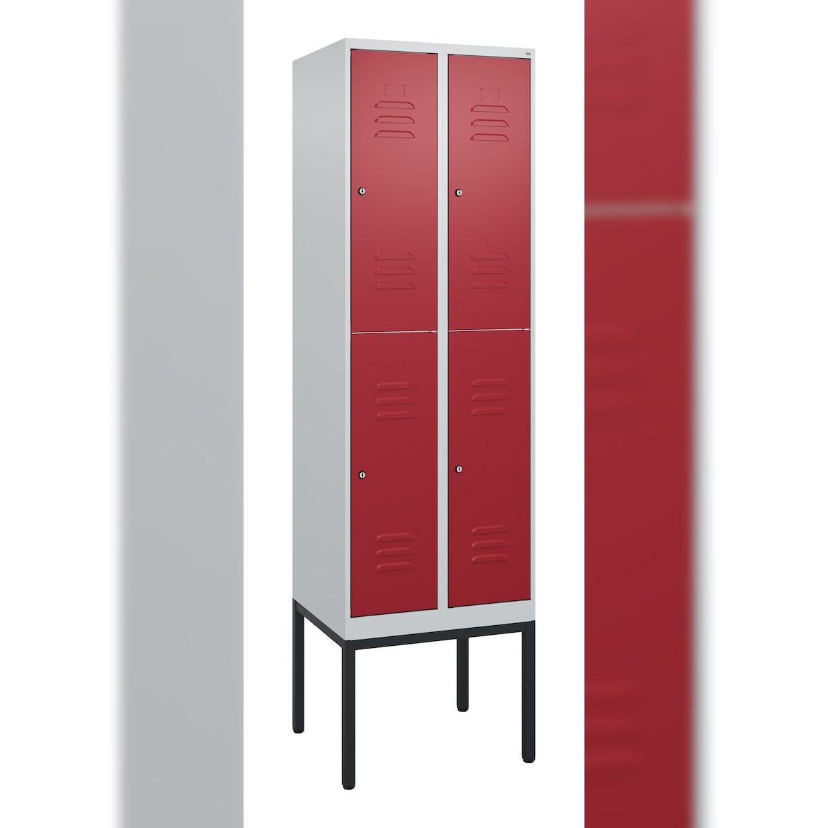 C+P Aufbewahrungs Doppel-Spind Classic PLUS, 2 Abteile, 4 Fachböden, HxBxT 185x60x50cm, Sicherheitsdrehriegel, Hellgrau/Rubinrot von PROREGAL