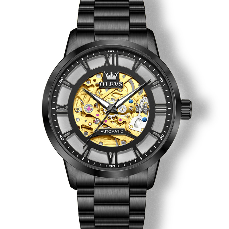 OLEVS 6728 Mens Watch Original Skeleton Automatic Mechanical Watch Waterproof Luminous Watches For Man Stainless Steel Watch