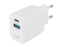 DELTACO - Strømadapter - 20 watt - PD - 2 utgangskontakter (USB, 24 pin USB-C) - hvit