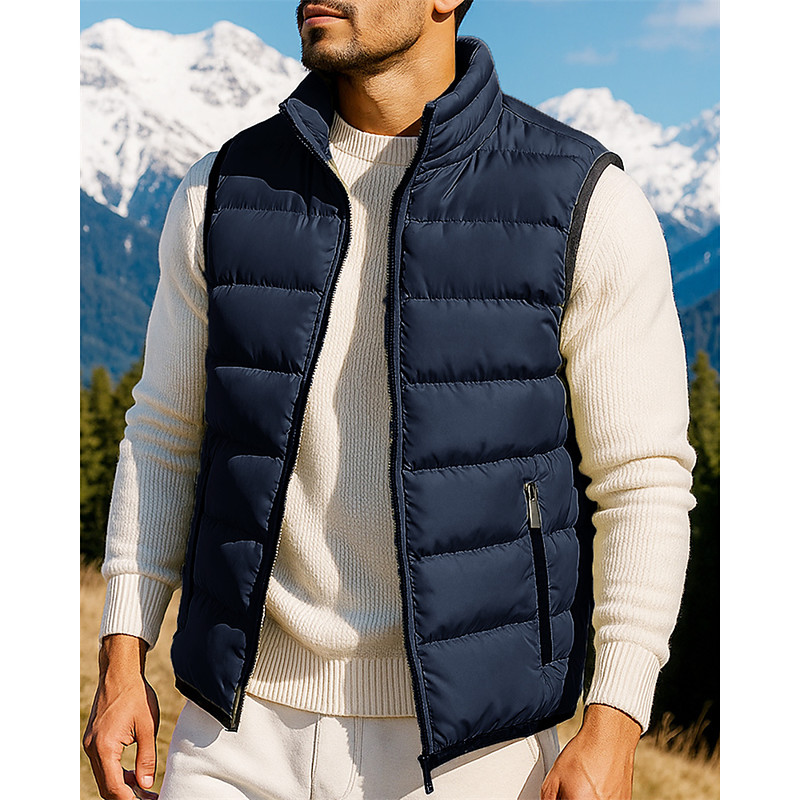 Men's Hiking Vest Winter Vest Puffer Vest Sleeveless Vest Outdoor Thermal Warm Winter Zipper Polyester Black Khaki Dark Blue Hunting Fishing Climbing