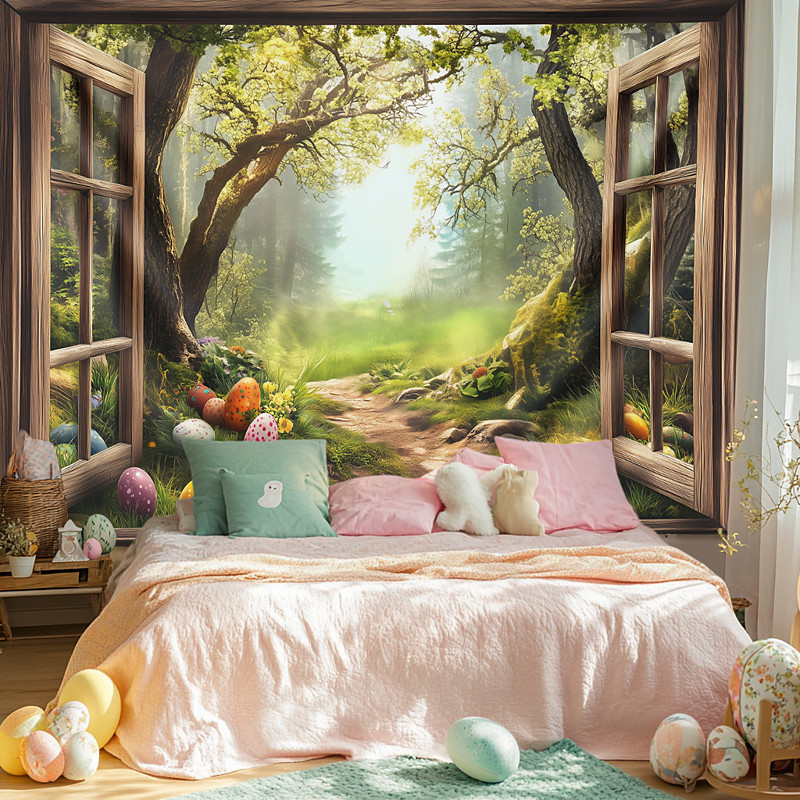 Window Landscape Wall Tapestry Art Decor Blanket Curtain Picnic Tablecloth Hanging Home Bedroom Living Room Dorm Decoration Polyester Forest