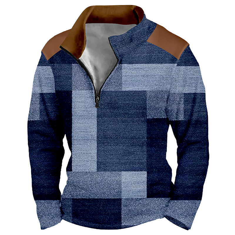 Men's Geometric Plaid Sweatshirt Sports Fashion Casual Long Sleeve Stand Collar Zip Home Party Work Streetwear Blue Purple Green Gray Fall Winter Designer S M L XL XXL XXXL