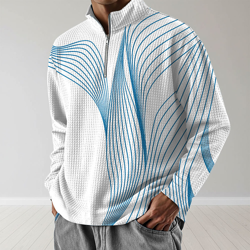 Men's Geometric Line Sweatshirt Fashion Daily Classic Casual Long Sleeve Stand Collar Quarter Zip Outdoor Home Office Work Lake blue Red Blue Gray Zip Up Fall Winter Designer S M L XL XXL XXXL