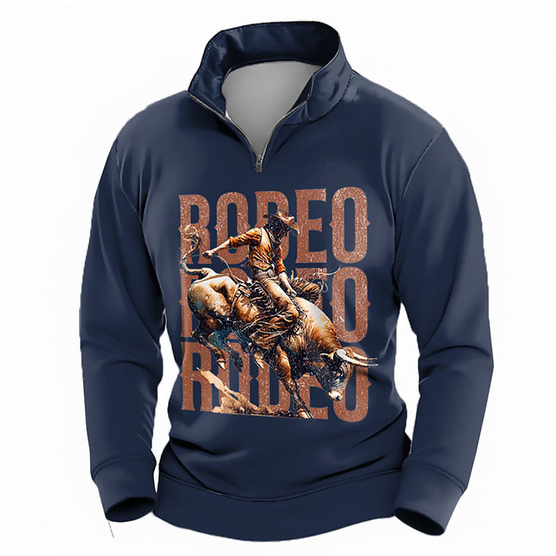 Men's Cowboy Sweatshirt Ethnic Vintage Retro Stand Collar Outdoor Work Gift Green Dark Blue Beige Zipper Fall Winter Designer S M L XL XXL XXXL