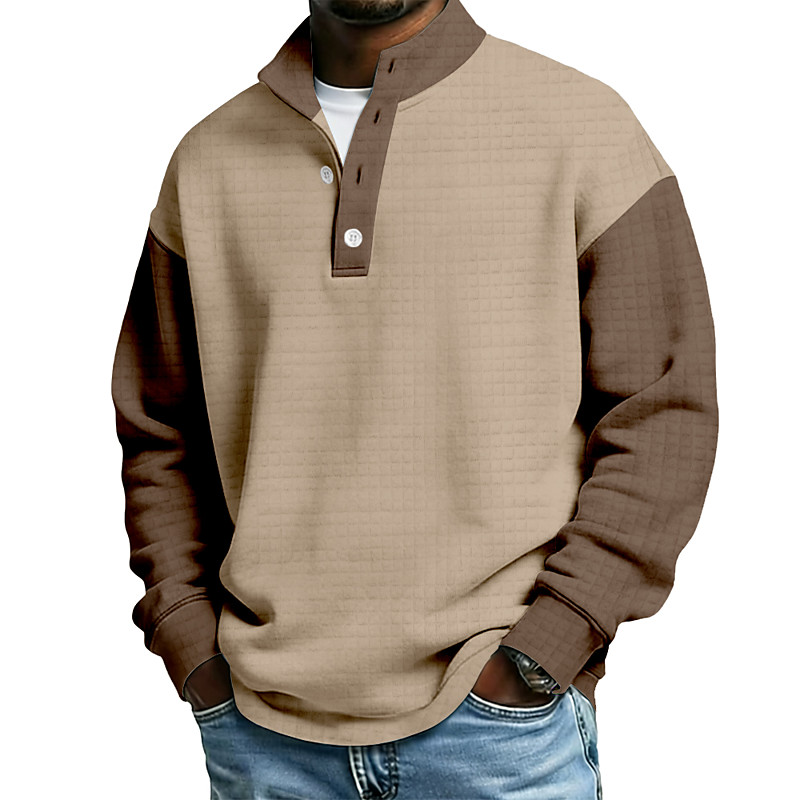 Men's Ombre Geometric Plaid Waffle Sweatshirt Daily Classic Casual Stand Collar Home Outdoor Work Gift Blue Pink Purple Green Khaki Buttons Fall Winter Designer S M L XL XXL XXXL
