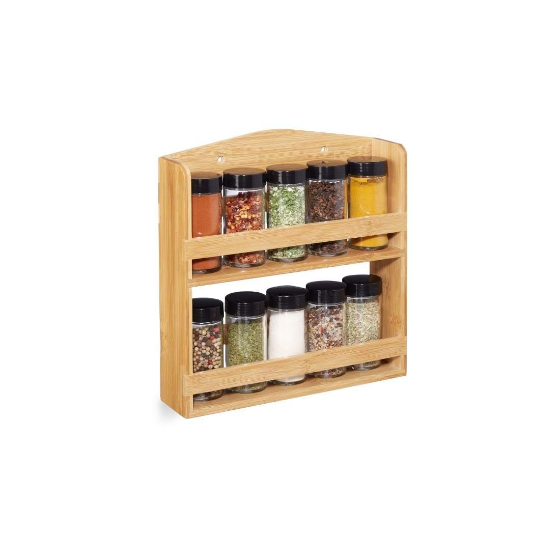 Krydderihylde i bambus, 10 krydderiglas